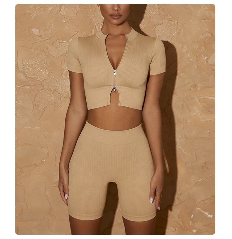 ชุดออกกำลังกายในยิมของผู้หญิงชุดเล่นฟิตเนสโยคะไร้ตะเข็บ