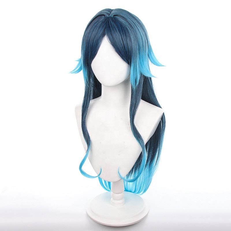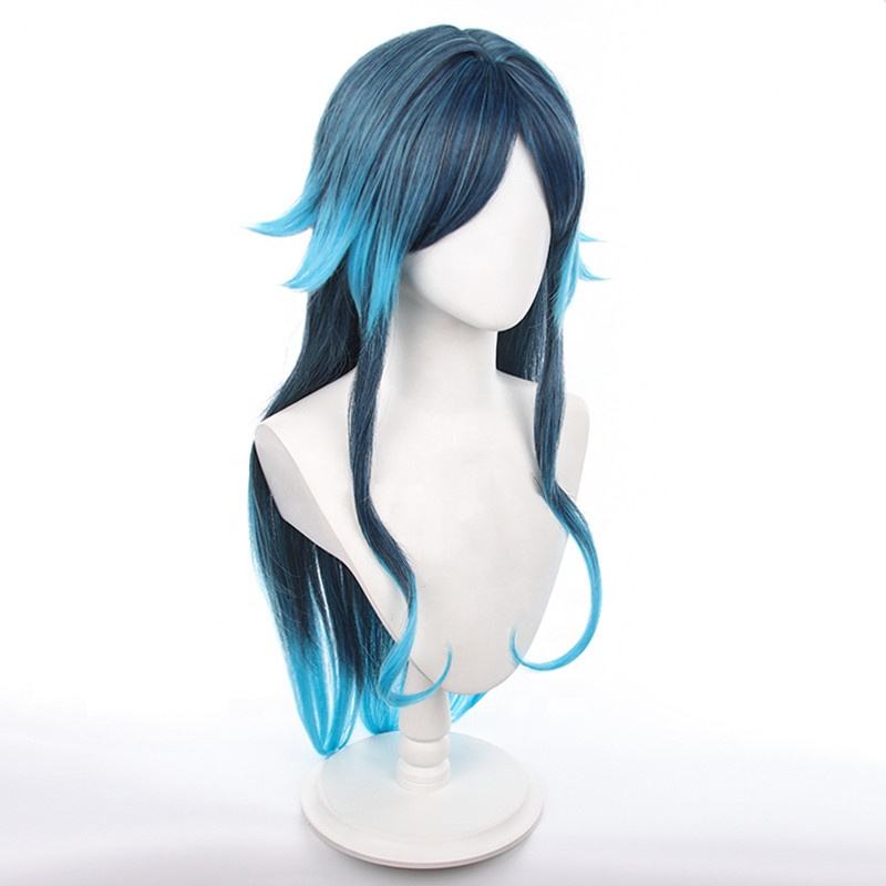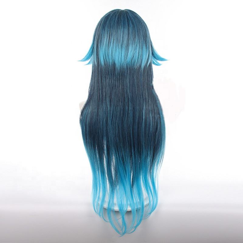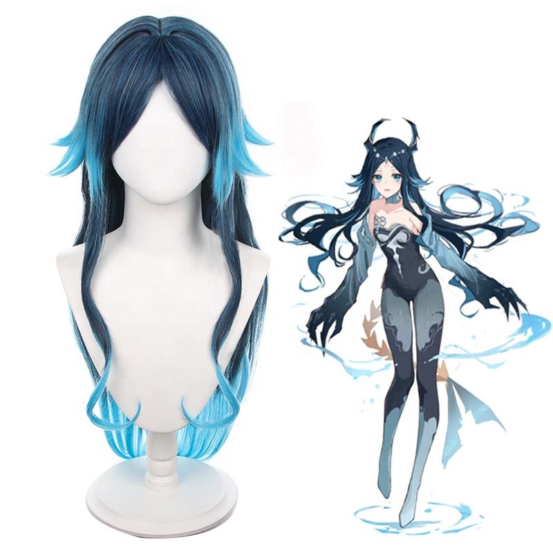 วิกผมคอสเพลย์ Genshin Impact Bonanus วิกผมยาว90ซม. สีน้ำเงินไล่ระดับสีพลังน้ำ Yaksha อะนิเมะเพลูก้าทนความร้อน