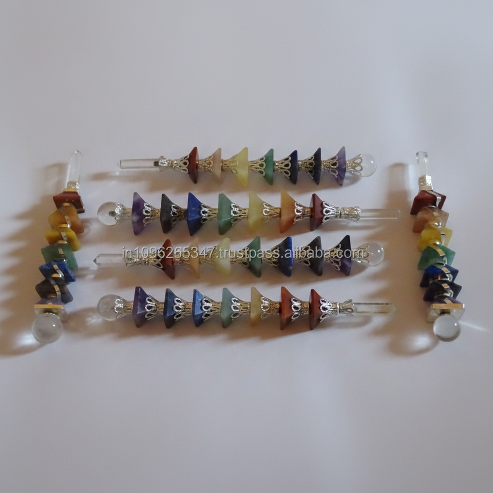 ไม้กายสิทธิ์หินกึ่งมีค่าสำหรับใช้ในการรักษาประเภทผสมกับงานหัตถกรรมพีระมิดจักระอัญมณี