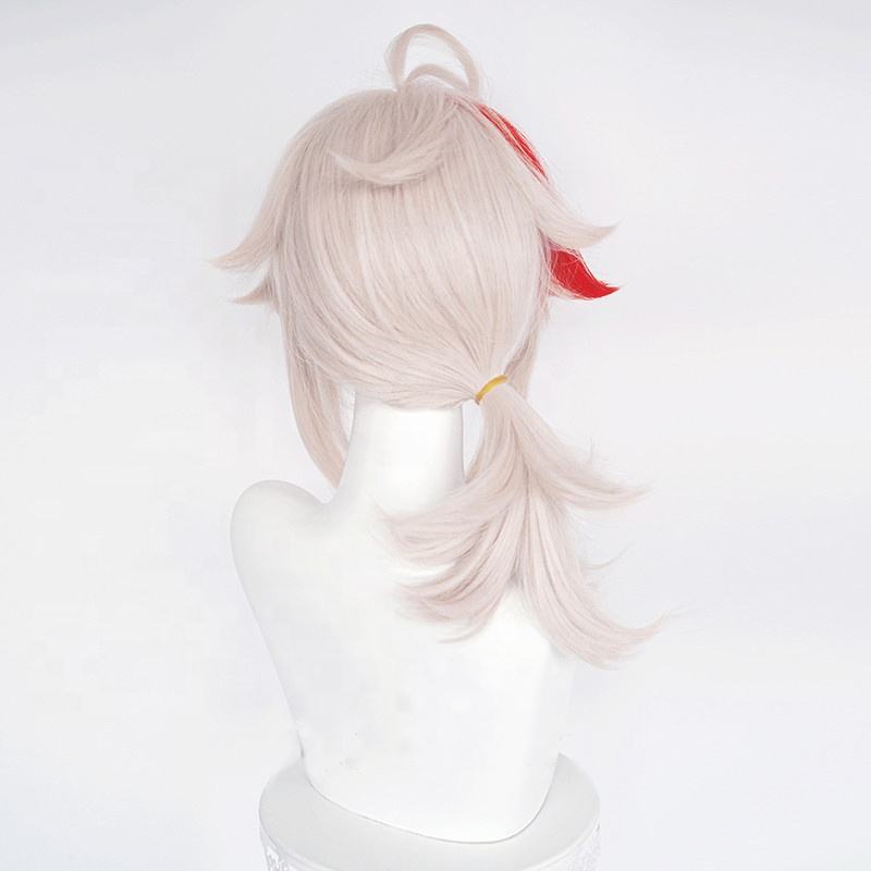 วิกผมอนิเมะ genshin 45ซม. สีชมพูเข้มขนาดกลางสีแดงผสม kaedehara kazuha คอสเพลย์ผมสังเคราะห์ทนความร้อน