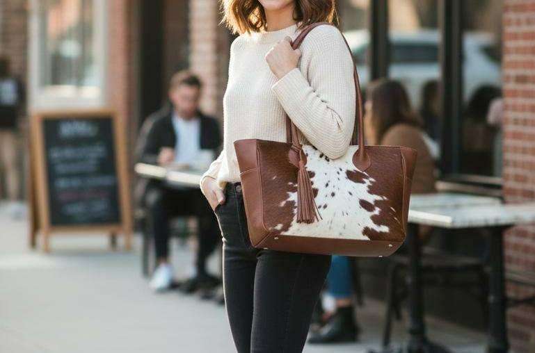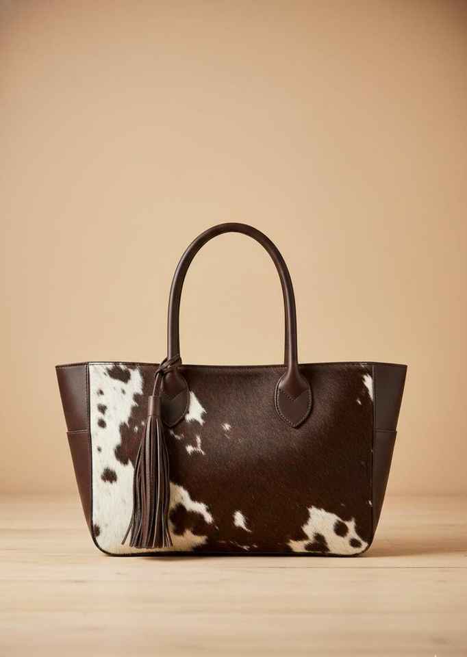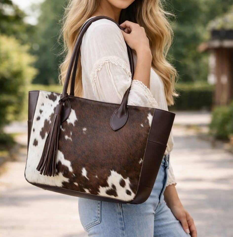 Wholesale Genuine Leather Hair-On Tote Bag Zipper Closure Embroidery Solid Color Vintage Style Customizable Color Logo-LHTB-0023