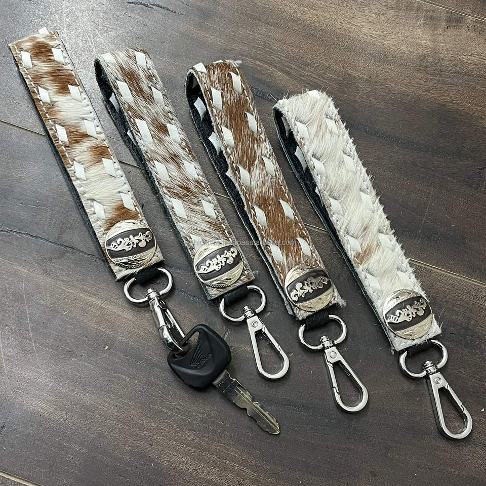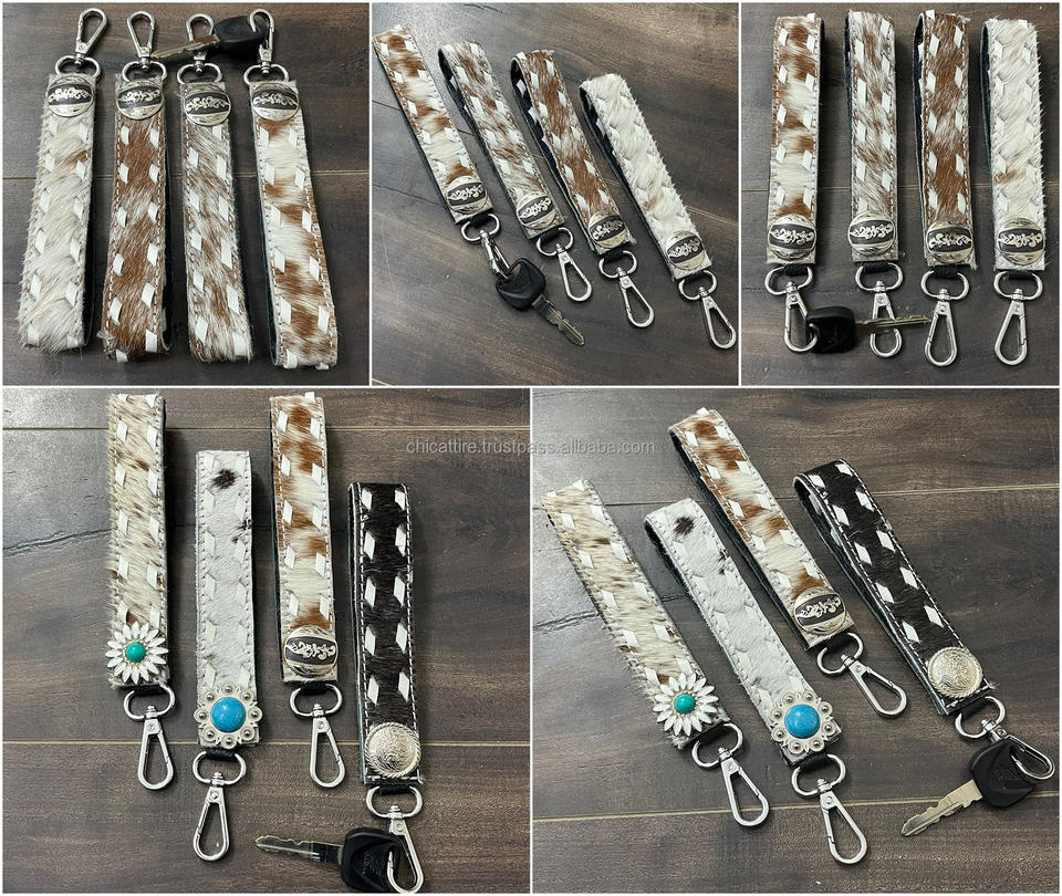 พวงกุญแจหนังวัวแท้แบบขายส่งสำหรับผู้หญิง ดีไซน์เก๋ไก๋ พร้อมขนสัตว์ สไตล์ตะวันตกแบบเรียบง่าย