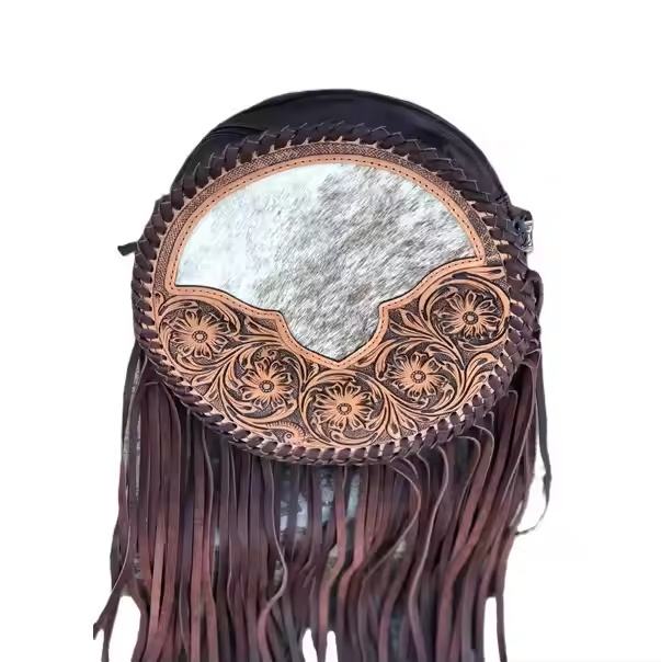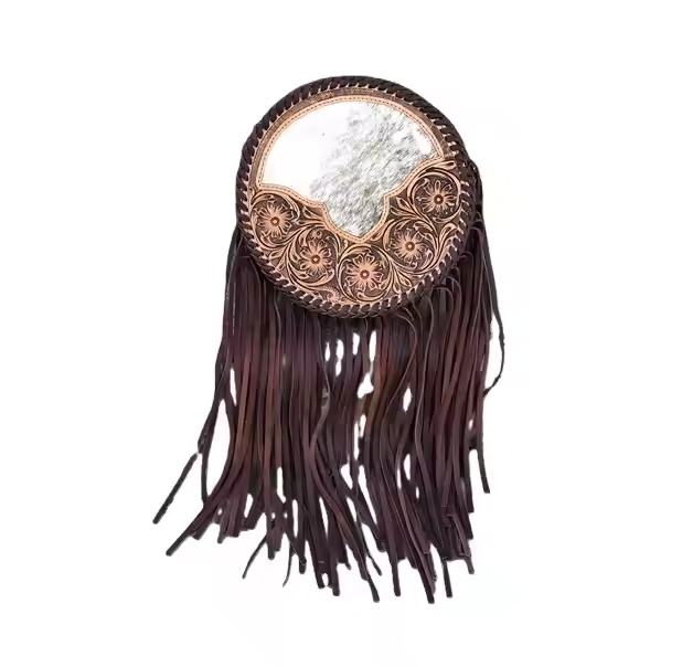 กระเป๋าใส่อาหารหนังแท้พิมพ์ลายสัตว์สไตล์โบฮีเมียนทำมือปิดซิปแบบอินเดียฤดูร้อนฤดูหนาว