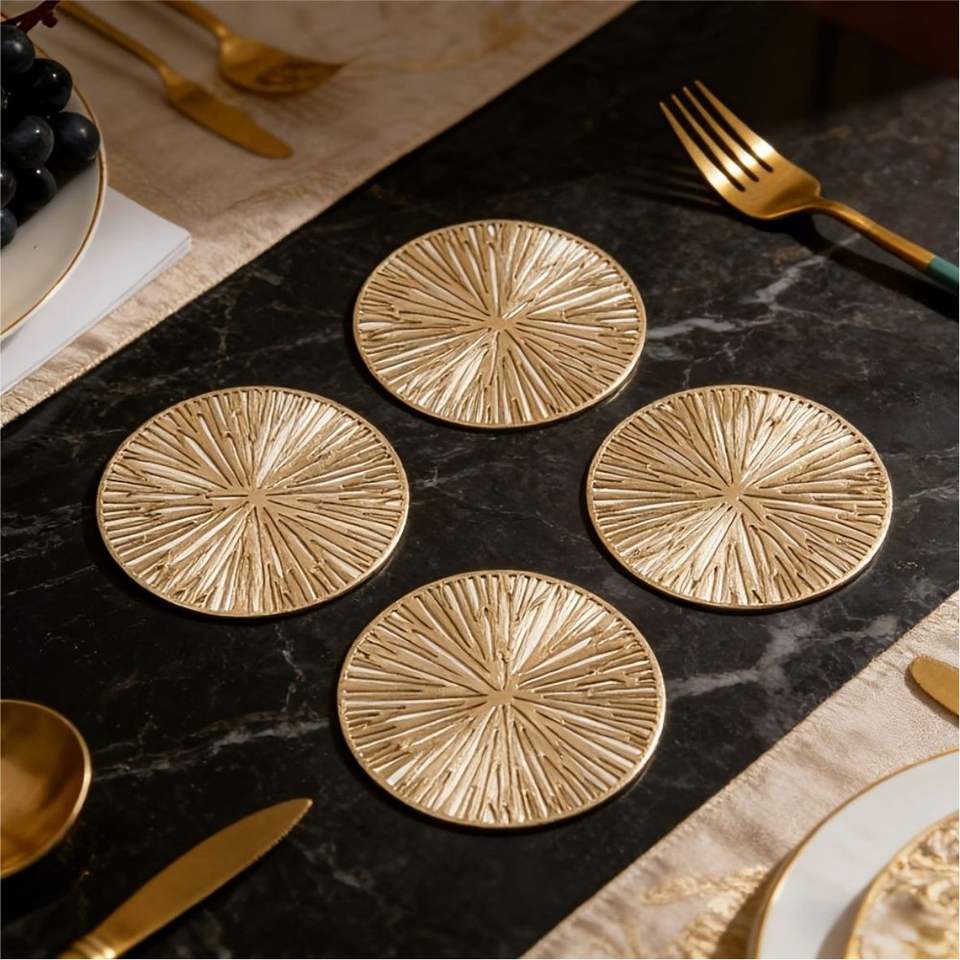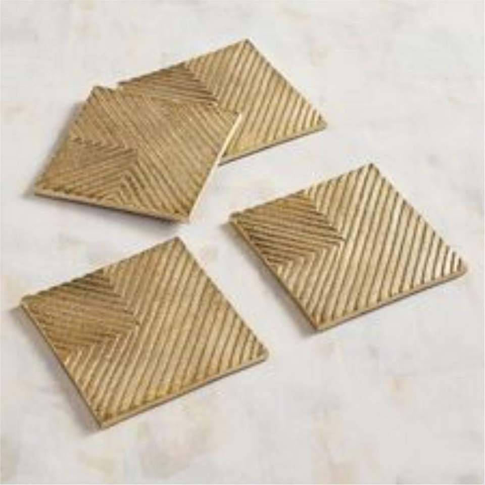 แผ่นรองแก้วทรงเรขาคณิตสีทองแบบขายส่ง แผ่นรองเครื่องดื่มโลหะแบบหนา แผ่นรองแก้วสี่เหลี่ยมตกแต่งหรูหราเคลือบทองเหลือง