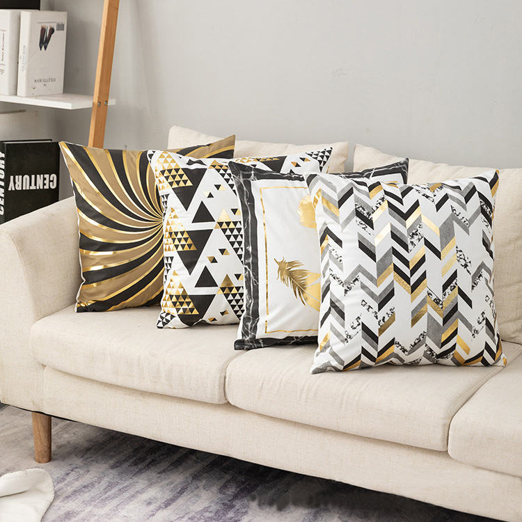 ปลอกหมอนอิงลายใบไม้เรขาคณิตแบบนามธรรมสำหรับโซฟา ปั๊มลายทองคำ ขายส่ง