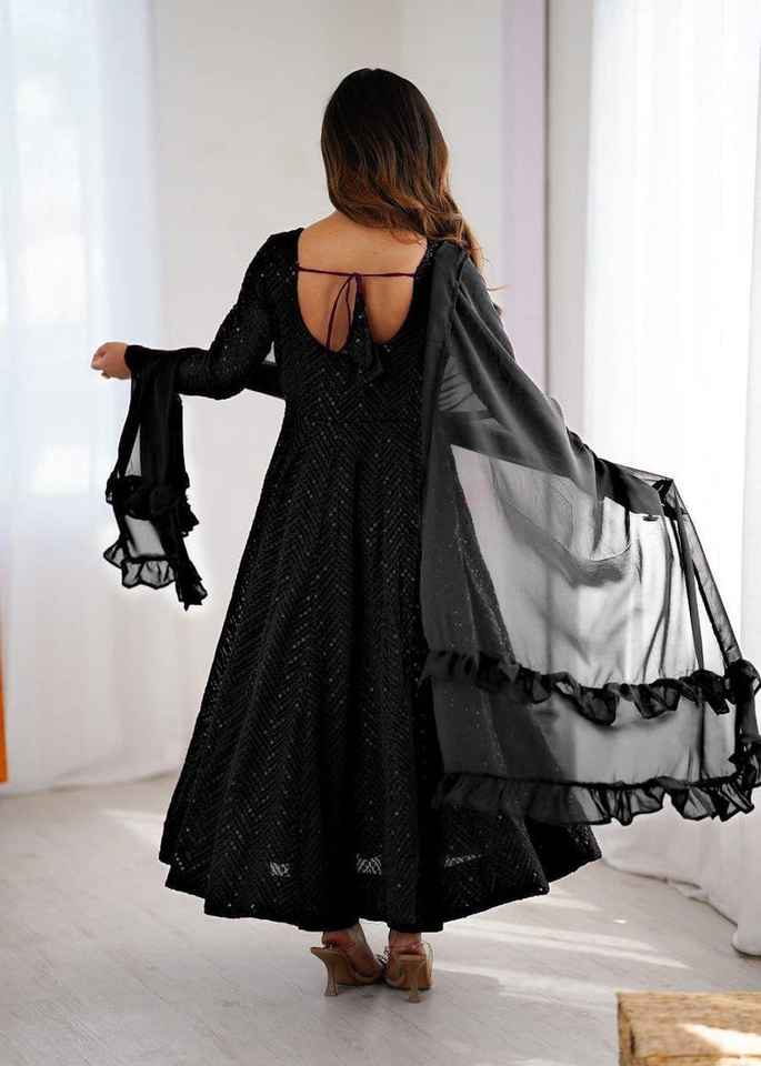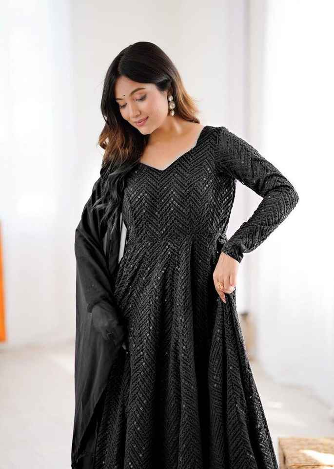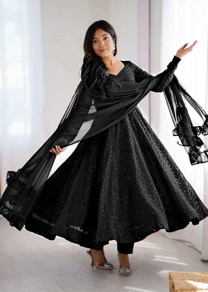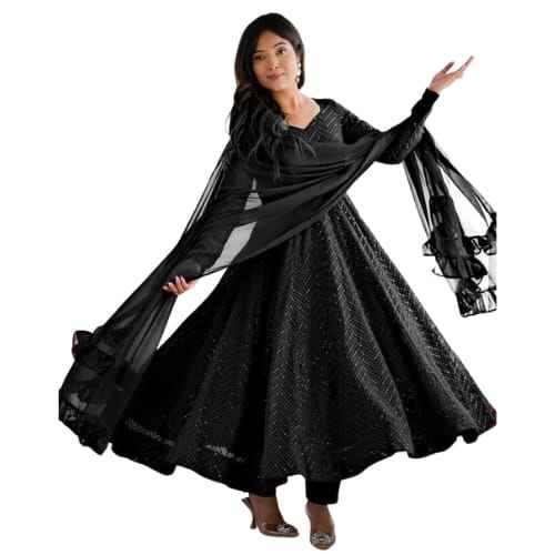 ชุดเดรสยาวแบบ Anarkali ผ้าจอร์เจตต์ปักเพชร พร้อมผ้าคลุมไหล่ดีไซน์เนอร์ แขนยาว สำหรับผู้หญิง ขายส่ง