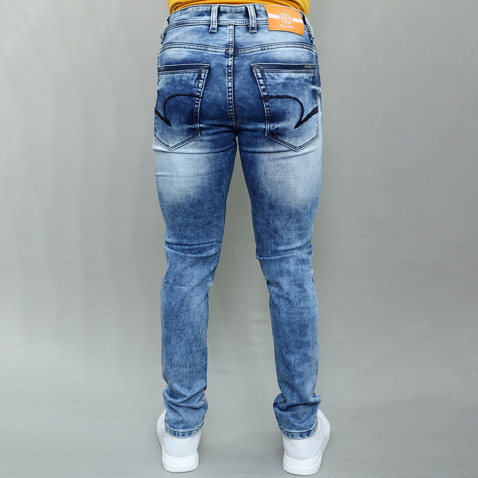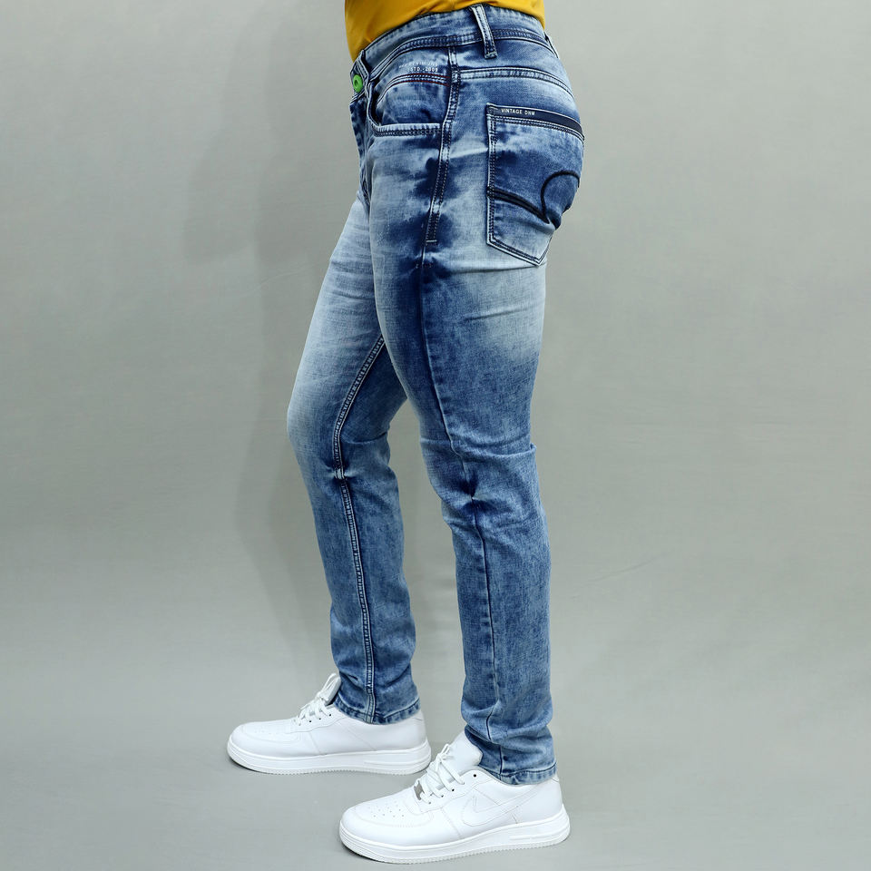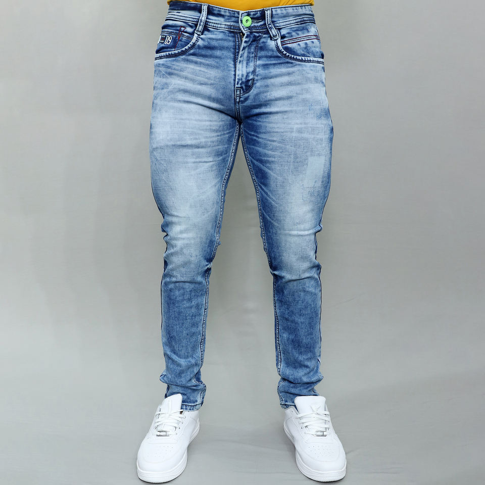 กางเกงยีนส์เดนิมยืดสีน้ำเงินทรงกลางสำหรับผู้ชายขายส่ง Gex