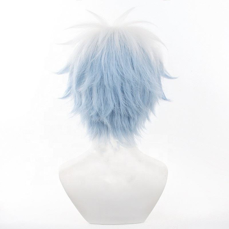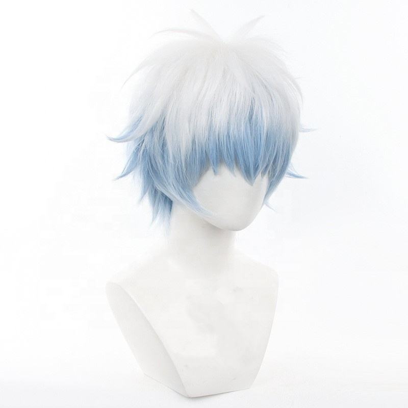 วิกผมคอสเพลย์กินทามะ ซากาตะ กินโทกิ สีขาว-น้ำเงินไล่เฉด ยาว 30 ซม. วิกผมสังเคราะห์ทนความร้อนสำหรับคอสเพลย์อนิเมะ ขายส่ง