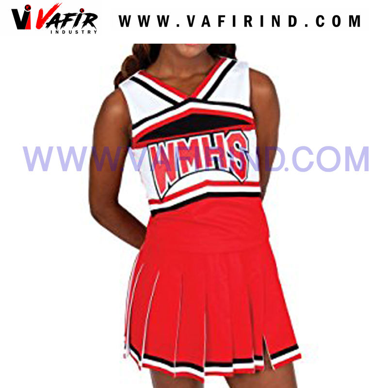 ชุดเชียร์ลีดเดอร์ของเด็กผู้หญิงชุดเชียร์ลีดเดอร์เสื้อเชียร์ลีดเดอร์ผ้าสแปนเด็กซ์ทำจากผ้าฝ้ายโพลีเอสเตอร์เรยอนลาเท็กซ์ไนลอน