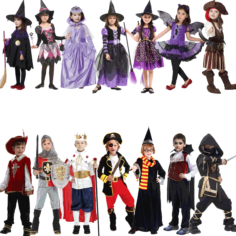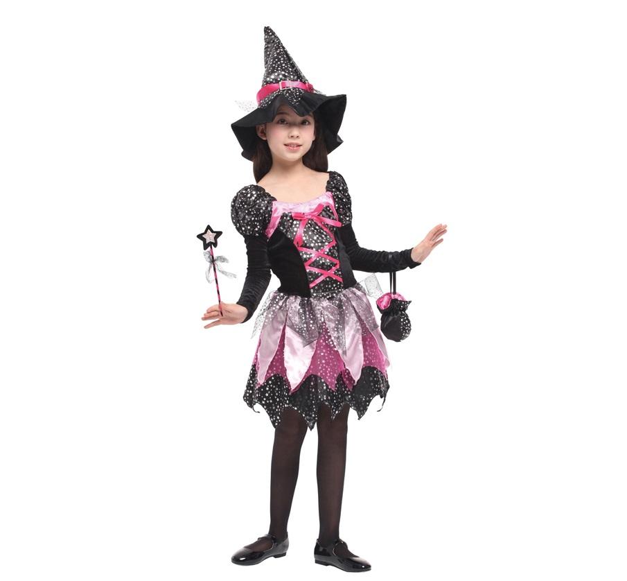 ชุดคอสเพลย์แม่มดน้อยสีม่วงทองสุดหรูสำหรับเด็กผู้หญิง พร้อมชุดเดรส/หมวก สำหรับงานฮาโลวีน ขายส่ง