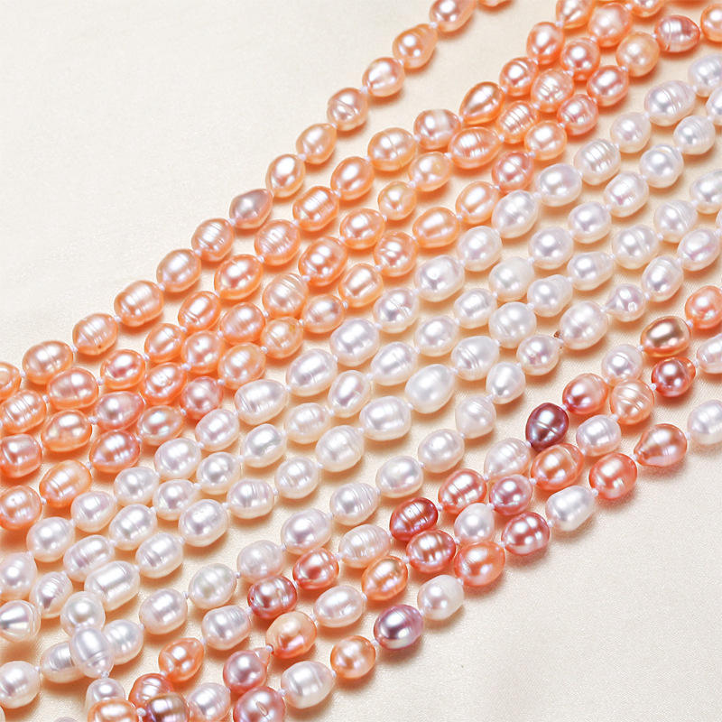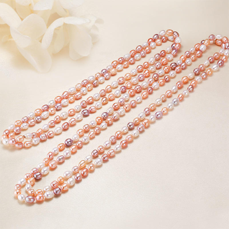 สร้อยคอไข่มุกน้ำจืดรูปทรงข้าวสารแบบสองชั้น พร้อมจี้โซ่ยาวสำหรับเด็กผู้หญิง ขายส่ง