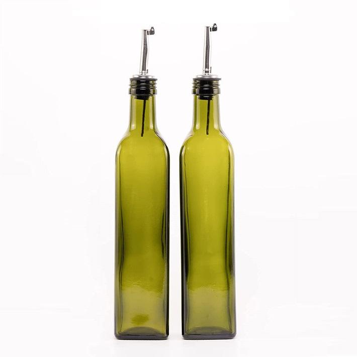 ขวดใส่น้ำมันมะกอกในแก้ว,ขวดใส่น้ำมันและน้ำส้มสายชูพร้อมที่ใส่และกรวยใส่น้ำมันคนโทสำหรับห้องครัว