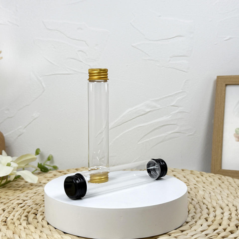 หลอดทดลองแก้วมีหลายขนาดพร้อมฝาสกรูอลูมิเนียม