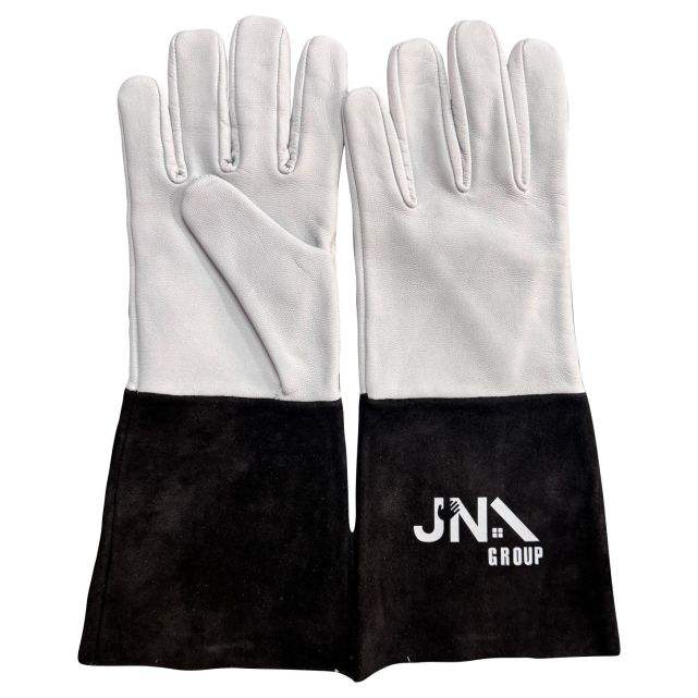 ถุงมืองานเชื่อมสีแดงถุงมือเชื่อมหนังแบบยาวทนความร้อนสำหรับช่างเชื่อมถุงมือทำงาน