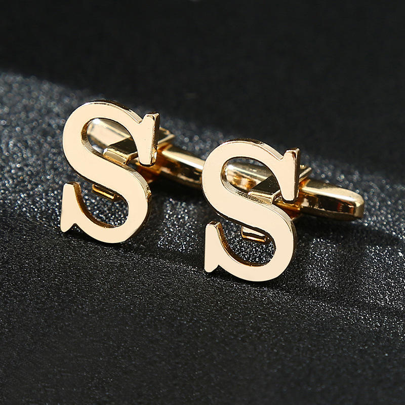 Wholesale Gold 26 English Letters Smooth Sleeve Nail Cufflinks Creative French Shirt for Men for Engagement Wedding or Gift