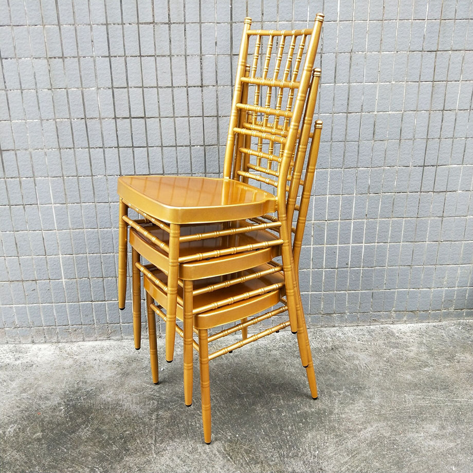 เก้าอี้อลูมิเนียมสีทองสำหรับจัดเลี้ยงในโรงแรม chiavari