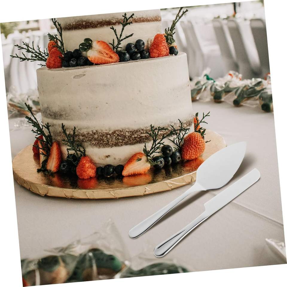 ชุดมีดเค้กและตะหลิวสแตนเลส 430 สีเงิน-ทอง 4 ชิ้น สำหรับงานแต่งงาน ขายส่ง