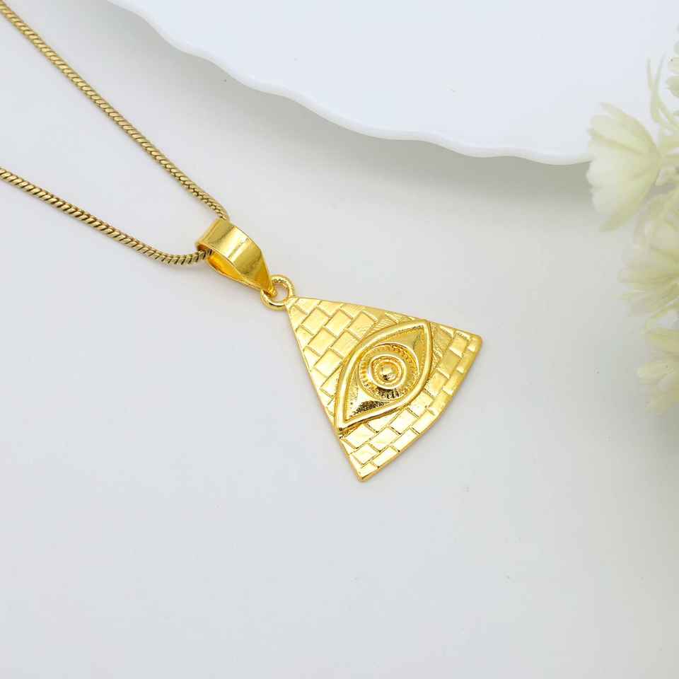 ขายส่งชุบทองอียิปต์สามเหลี่ยมพีระมิดตาจี้แฟชั่นสร้อยคอเครื่องประดับฮิปฮอปปีศาจตาเรขาคณิตการออกแบบที่ไม่ซ้ํากัน