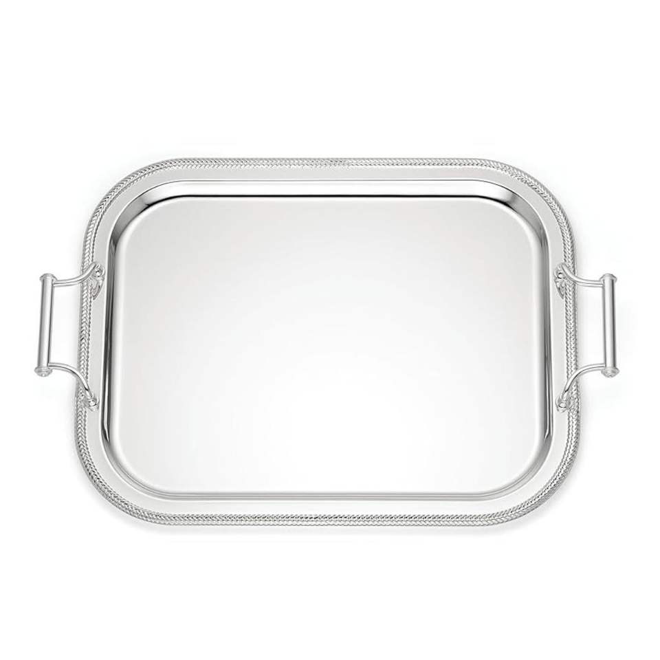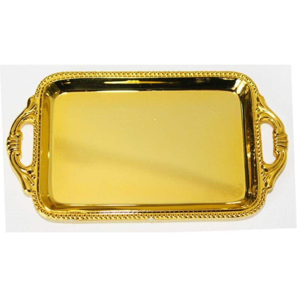 ถาดสแตนเลสชุบทองขายส่ง ถาดเสิร์ฟอาหารรูปสี่เหลี่ยมผืนผ้า ด้ามจับตามหลักสรีรศาสตร์ ถาดเสิร์ฟอเนกประสงค์ ถาดตกแต่ง