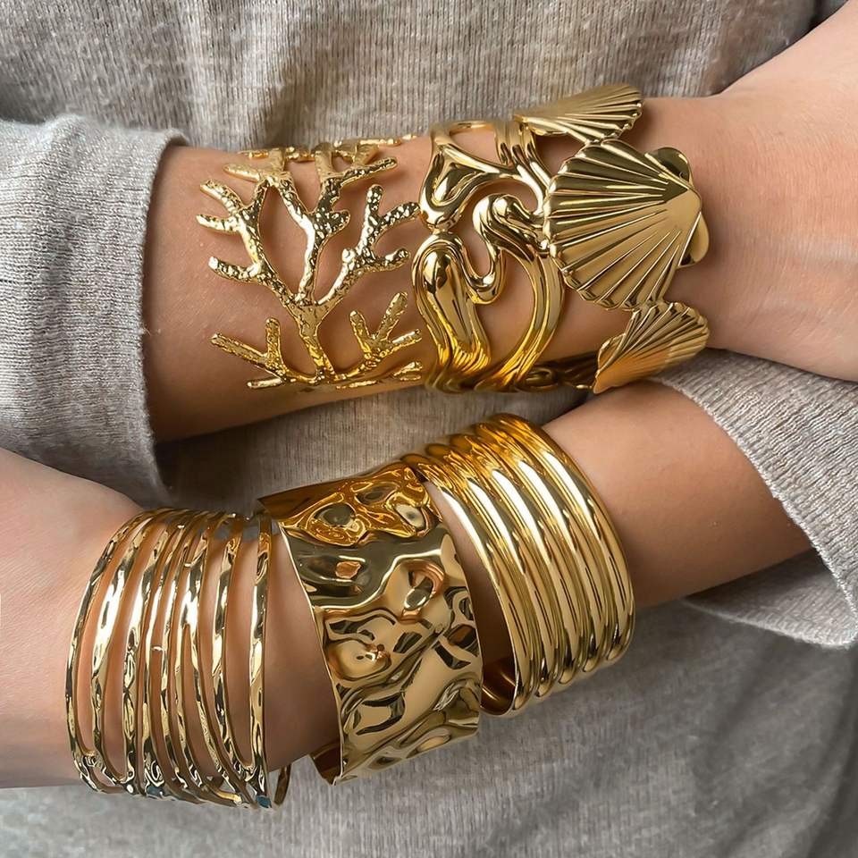 Wholesale Golden Jewelry Shell Bangles Bracelet Open Adjustable Fadeless Women's Stainless Steel Bracelet