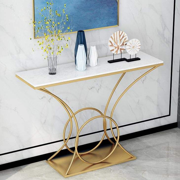 โต๊ะคอนโซลโลหะสีทองสำหรับตกแต่งสำนักงานโต๊ะหินอ่อนสี่เหลี่ยมสีขาวสำหรับตกแต่งห้องนั่งเล่น