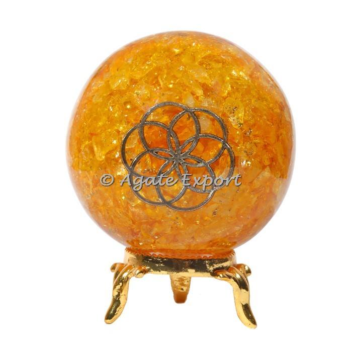 หินอัญมณีธรรมชาติทรงไข่ทรงกลมสีทองแกะสลักแบบ orgonite ผลิตภัณฑ์ที่มีการเปลี่ยนรูปแบบรัก