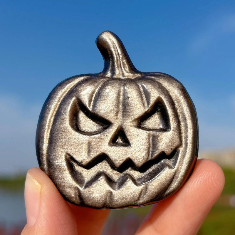 ฟักทองหินออบซิเดียนสีทอง/สีเงิน ขายส่ง สไตล์โบฮีเมียน ของตกแต่งฮาโลวีนและคริสต์มาส ฟักทองควอตซ์ ของตกแต่งบ้าน ของขวัญฮาโลวีน