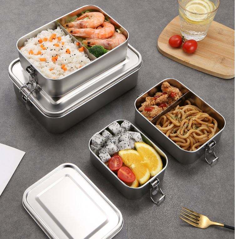 กล่องข้าวสแตนเลส 304 คุณภาพดี ขายส่ง สไตล์ญี่ปุ่น ฝาไม้ไผ่ พร้อมสายสะพาย