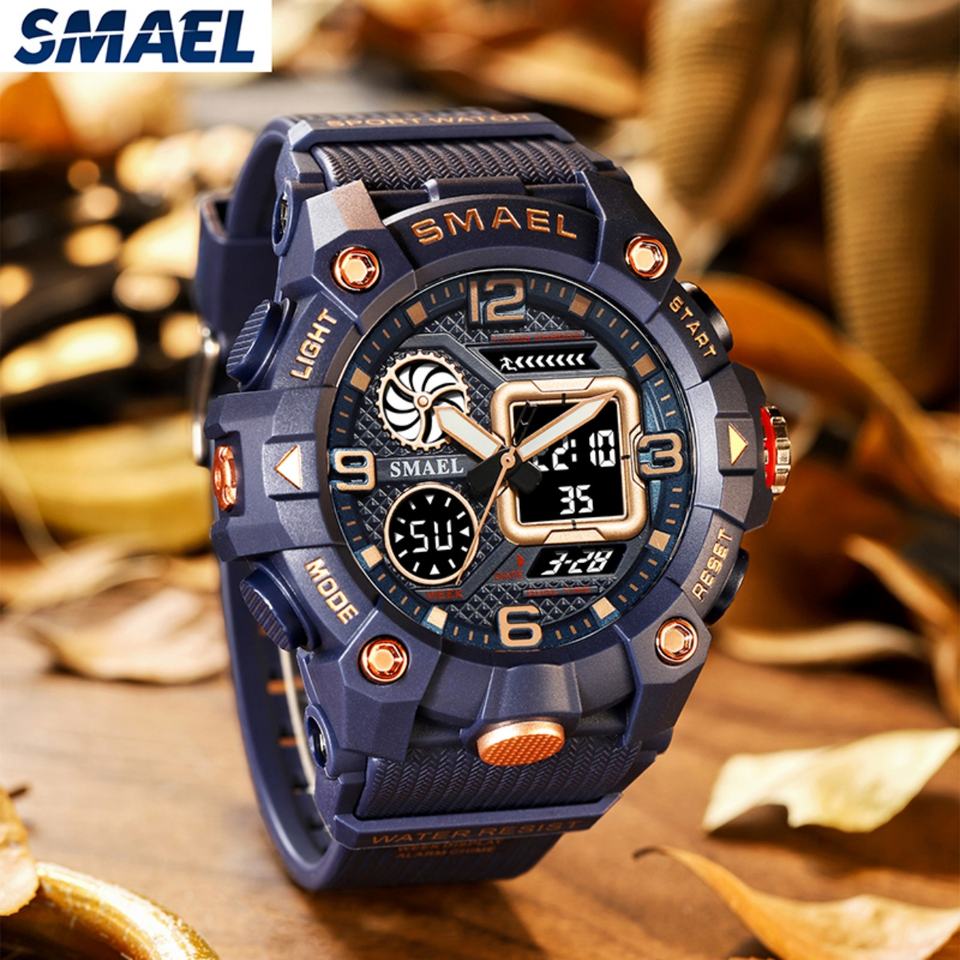 นาฬิกาข้อมือ SMAEL 8055 คุณภาพดี ขายส่ง นาฬิกาดิจิตอลอนาล็อกสำหรับผู้ชาย แบรนด์หรูหรา ฟังก์ชั่นหลากหลาย แสดงเวลาสองระบบ นาฬิกาข้อมือผู้หญิง