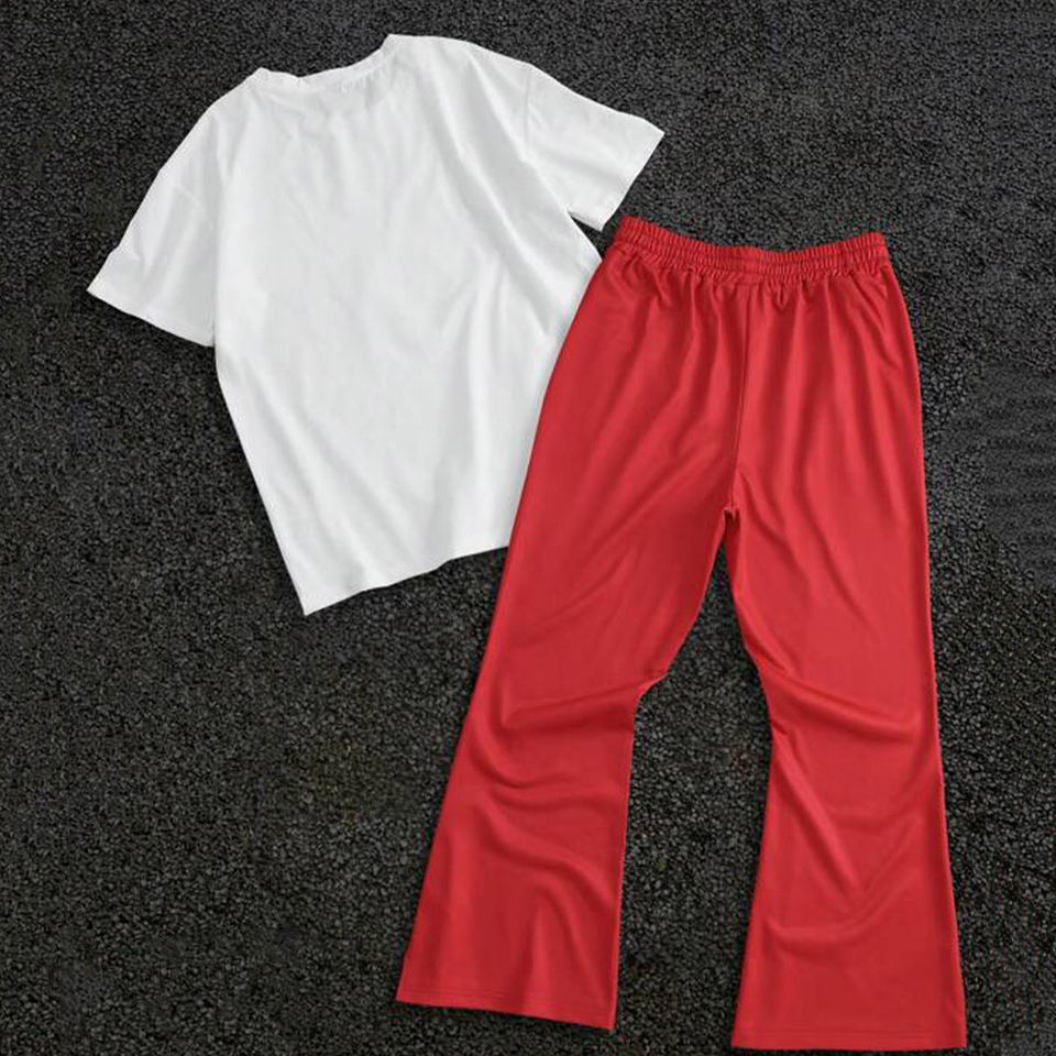 ชุดเสื้อผ้าแนวสตรีท2ชิ้นแบบกำหนดเองชุดลายกอสเปลพร้อมเสื้อยืดผ้าฝ้ายสีขาวและสีแดงเปลวไฟเปลวไฟ