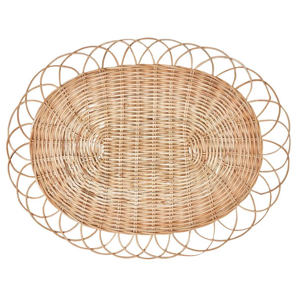 เสื่อหวายทรงรีที่สง่างามเสื่อปูโต๊ะหวายทำด้วยมือพร้อมแผ่นรองจานตกแต่งแบบเปิดขอบทำจากเวียดนาม
