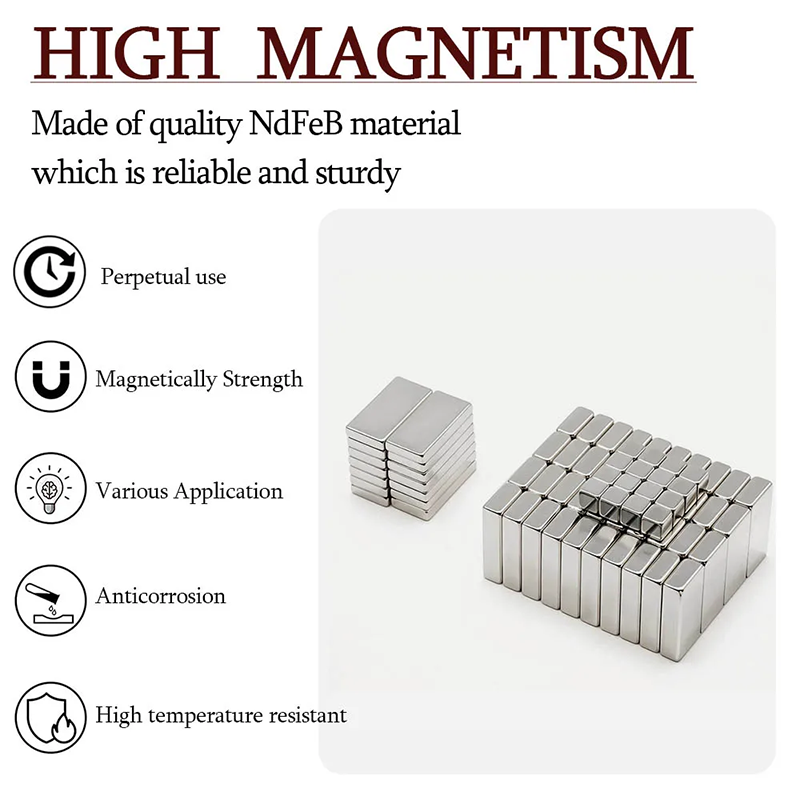 แม่เหล็กนีโอไดเมียมเกรดขายส่ง N35 N52 รูปทรงสี่เหลี่ยมแบบกำหนดเอง คุณภาพสูง