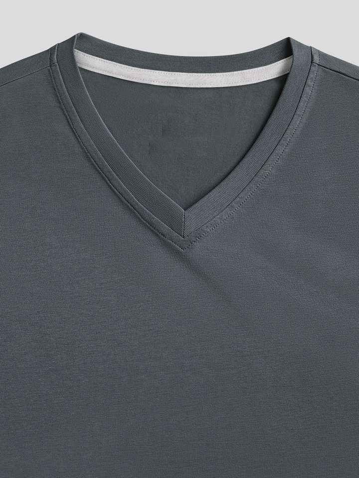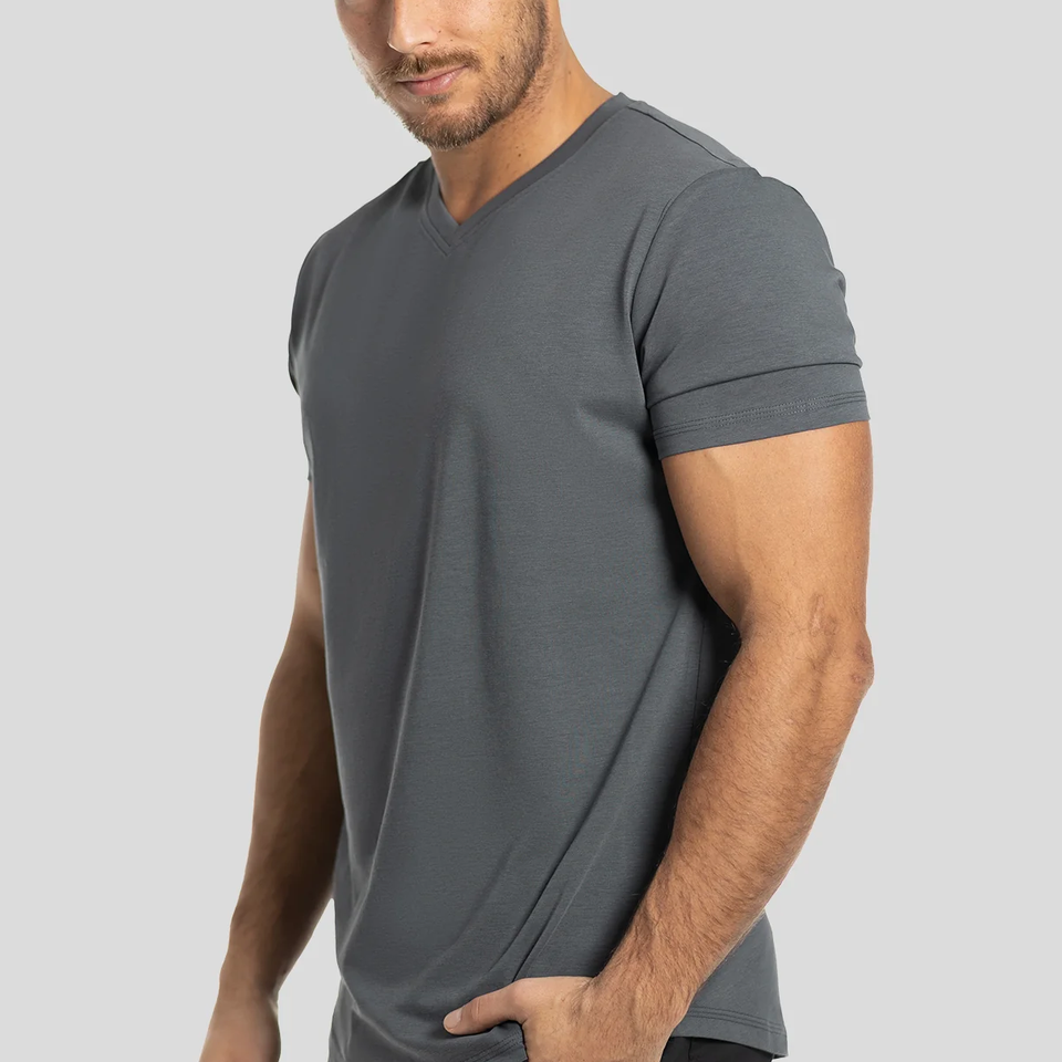 เสื้อยืดคอวีแขนสั้นสีเทาขายส่ง ผ้าฝ้าย 100% เนื้อหนา พิมพ์ลายกราฟิกตามสั่ง สำหรับผู้ชาย