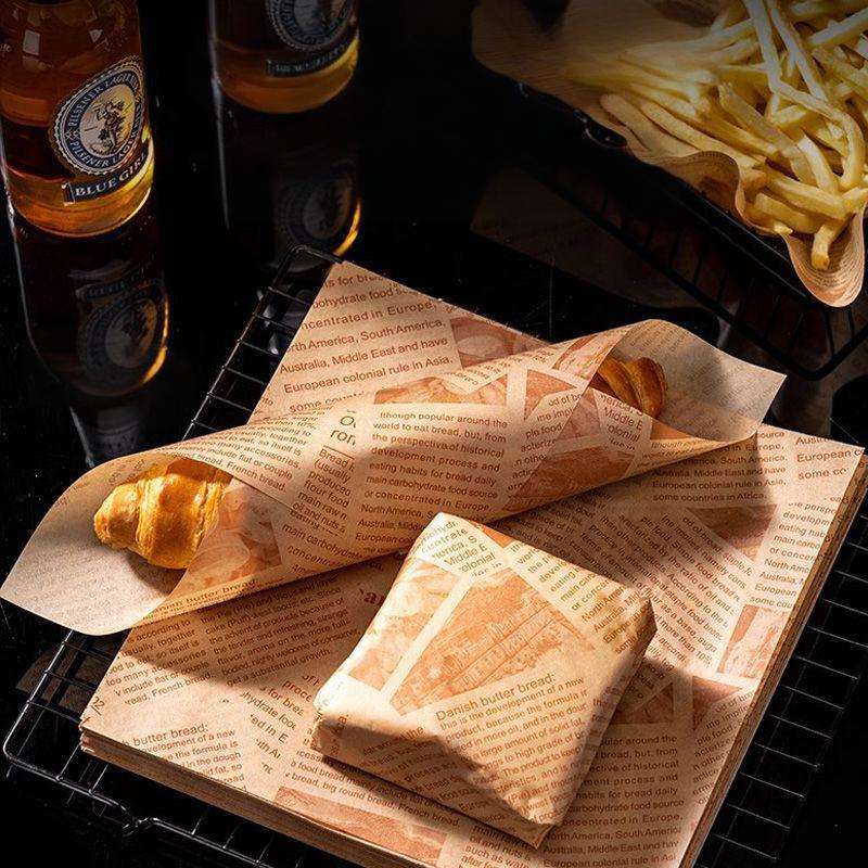 กระดาษห่ออาหารสีน้ำตาลกันไขมันแบบขายส่ง สำหรับห่อแซนวิช เบอร์เกอร์