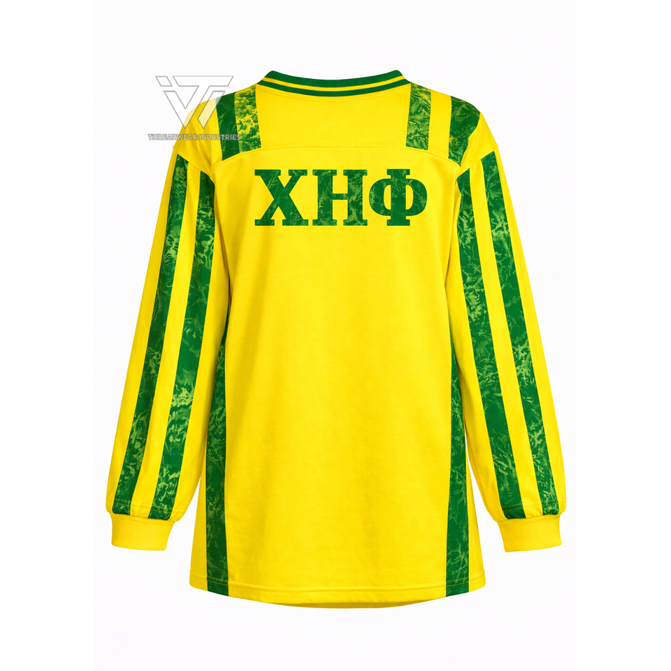 เสื้อเจอร์ซีย์ฟุตบอลลายทางวินเทจ Greek Chi Eta phi เสื้อกีฬาสไตล์วิทยาลัย