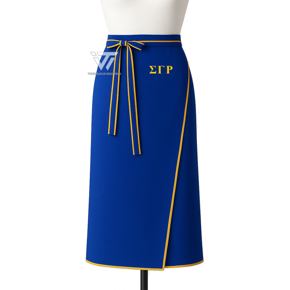 กระโปรงผูกโบว์ปักลายแกมม่าแกมมาเสื้อสโมสรโลโก้กรีกซิกม่ากระโปรงทางการที่สง่างาม