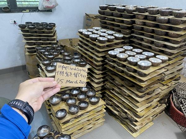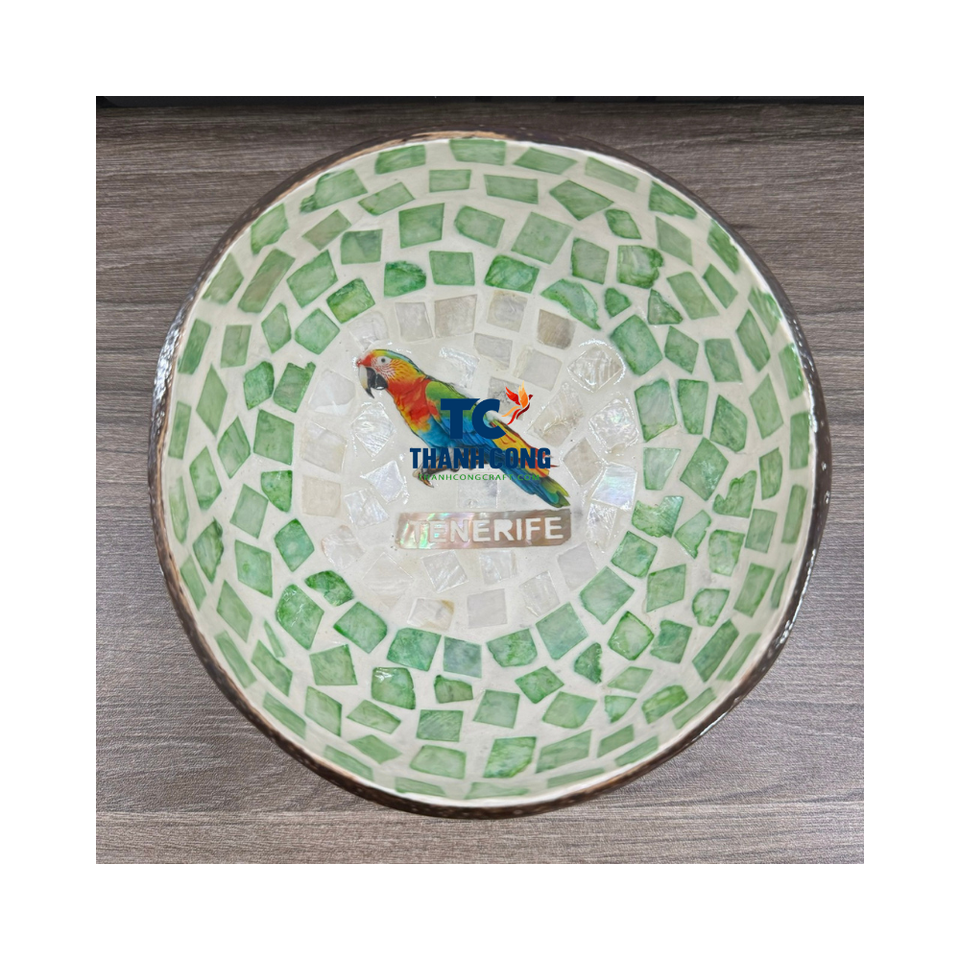 ชามมะพร้าวลายนกแก้วมาคอว์ไข่มุกสีเขียวสำหรับเป็นของขวัญที่ดีที่สุดสำหรับโอกาสพิเศษผ้าทอมือในเวียดนาม
