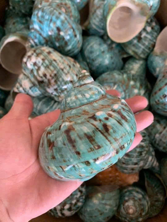 เปลือกหอยเทอร์โบสีเขียวทำความสะอาดจำนวนมากสำหรับตกแต่งบ้าน