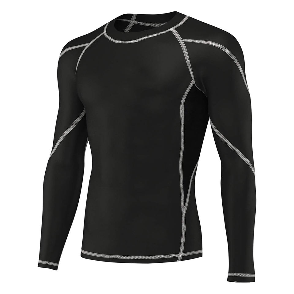 เสื้อรัดรูปสำหรับใส่ไปยิมสีดำสำหรับผู้ใหญ่เสื้อสแปนเด็กซ์โพลีเอสเตอร์ทำโลโก้ได้ตามต้องการ