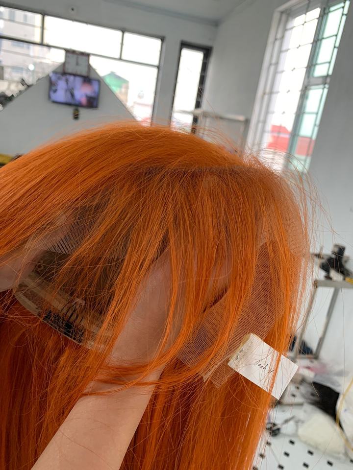 วิกผมลูกไม้ด้านหน้าแบบใสปิดตรงสีส้มผมต่อแบบมนุษย์แท้ผู้จัดจำหน่ายในเวียดนาม