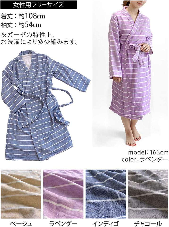 Hiorie ชุดนอนผ้าโปร่งลายทางคอตตอน100%, เสื้อคลุมอาบน้ำชุดกิโมโนชุดนอนสตรีชุดนอนผ้าโปร่งสีฟ้าสไตล์ญี่ปุ่นระบายอากาศได้ดี