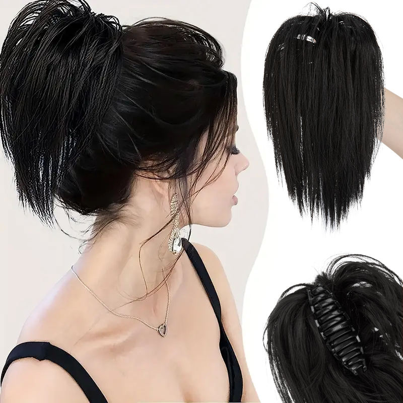 เครื่องทำผมทรงบันแบบขายส่ง กิ๊บติดผมทรงบันแบบยุ่งๆ ผมปลอมแบบตรงเนียนสไตล์ชิญอง หางม้าสำหรับผู้หญิง