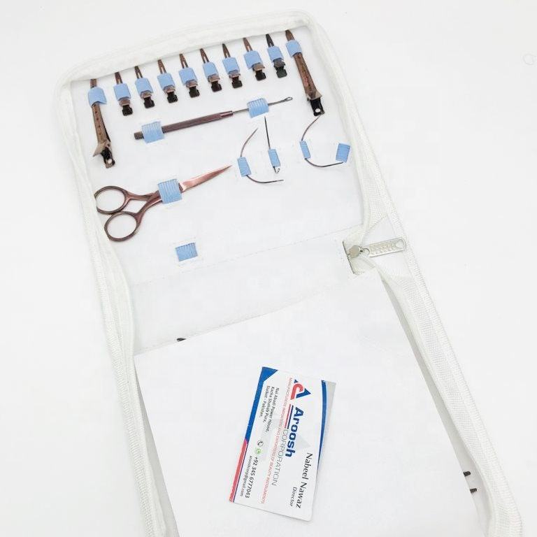 Aroosh Corp ชุดอุปกรณ์ต่อผมแบบมืออาชีพคลิปหนีบกรรไกรเข็มโครเชต์โรสโกลด์อุปกรณ์ผ่าตัดสแตนเลส