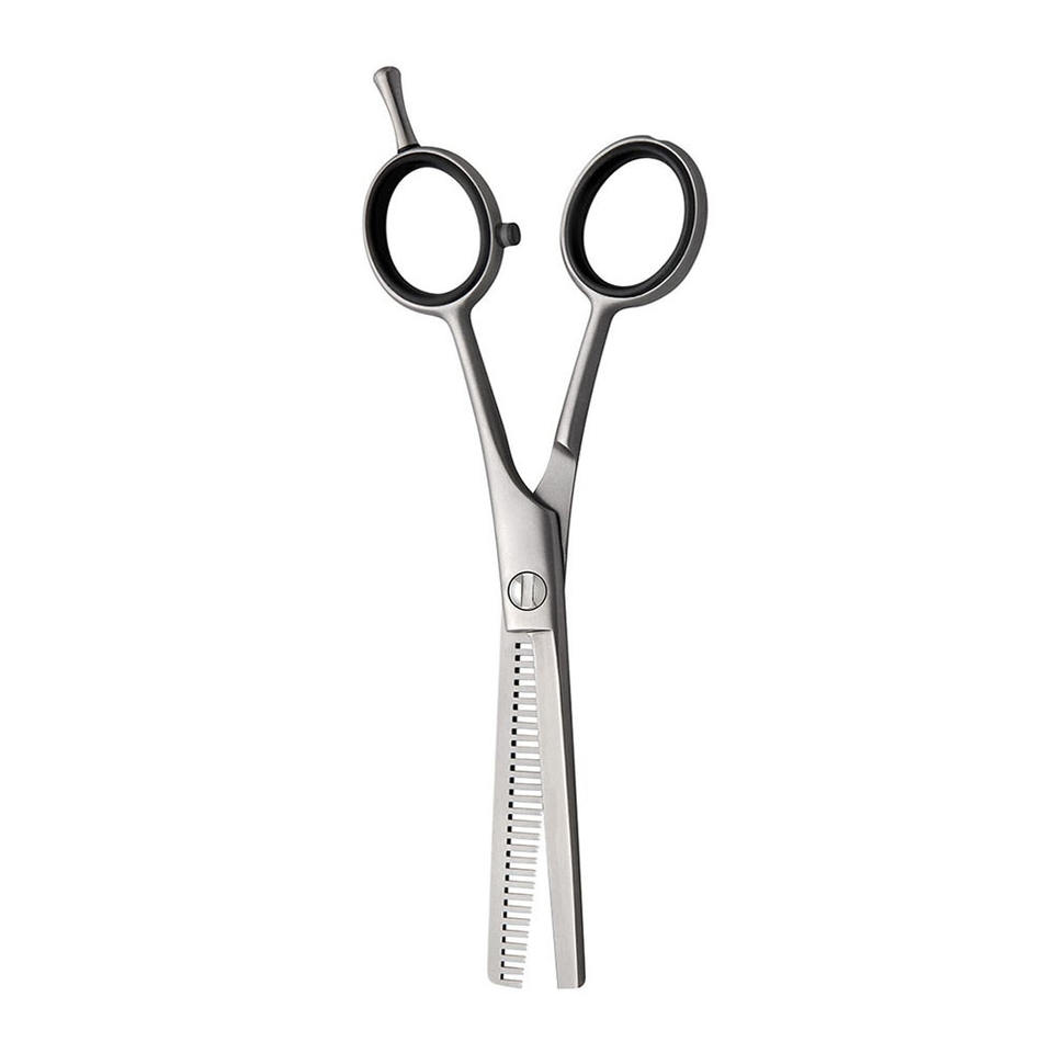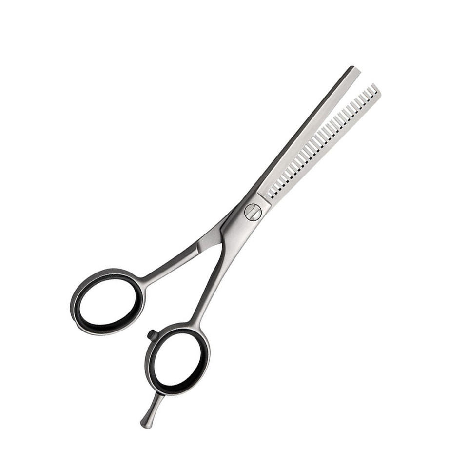 กรรไกรตัดผมแบบบางทำจากสเตนเลสสตีลพร้อมที่วางนิ้ว