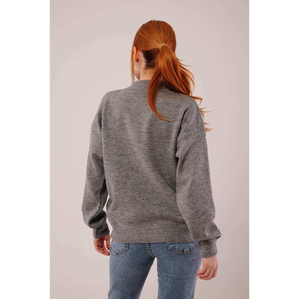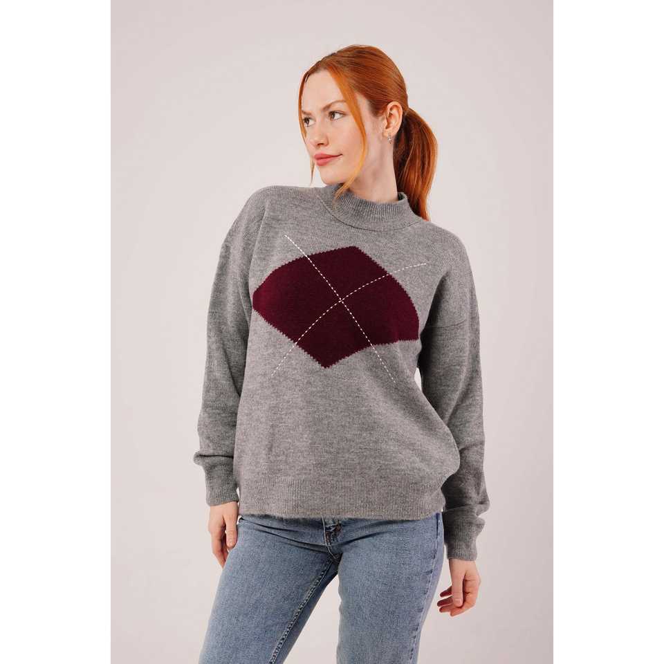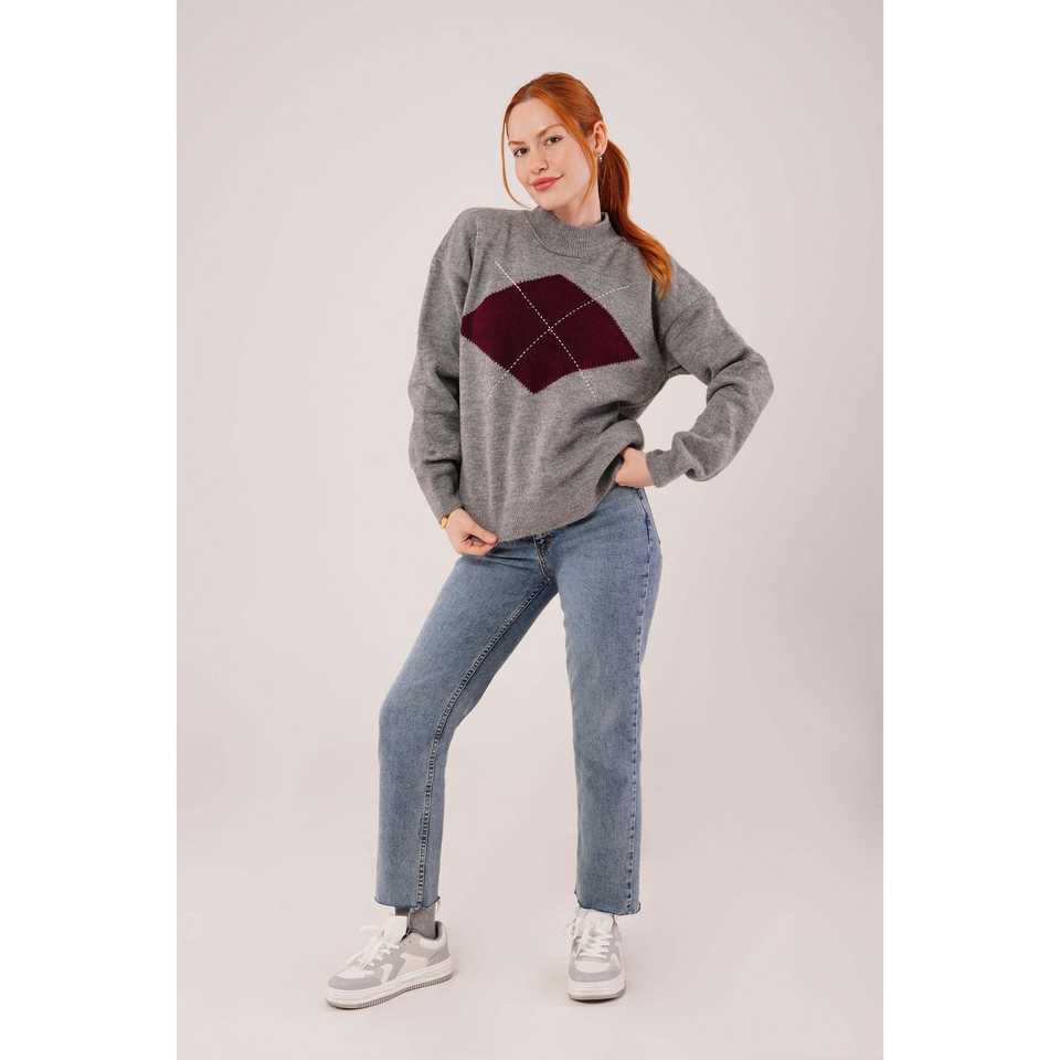 เสื้อสเวตเตอร์คอเต่าครึ่งตัวสีเทา ลายพิมพ์ด้านหน้า สไตล์ลำลอง ขายส่ง
