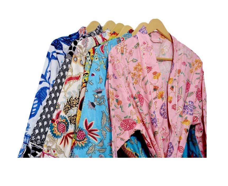 ชุดกิโมโนผ้าฝ้ายพิมพ์ลายสำหรับผู้หญิงชุดเดรสชุดกลางคืนชุดเดรสกิโมโนผ้าฝ้ายอินเดีย