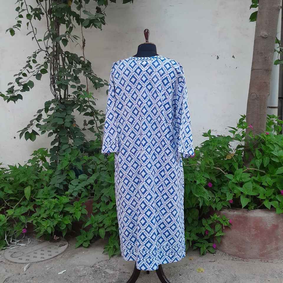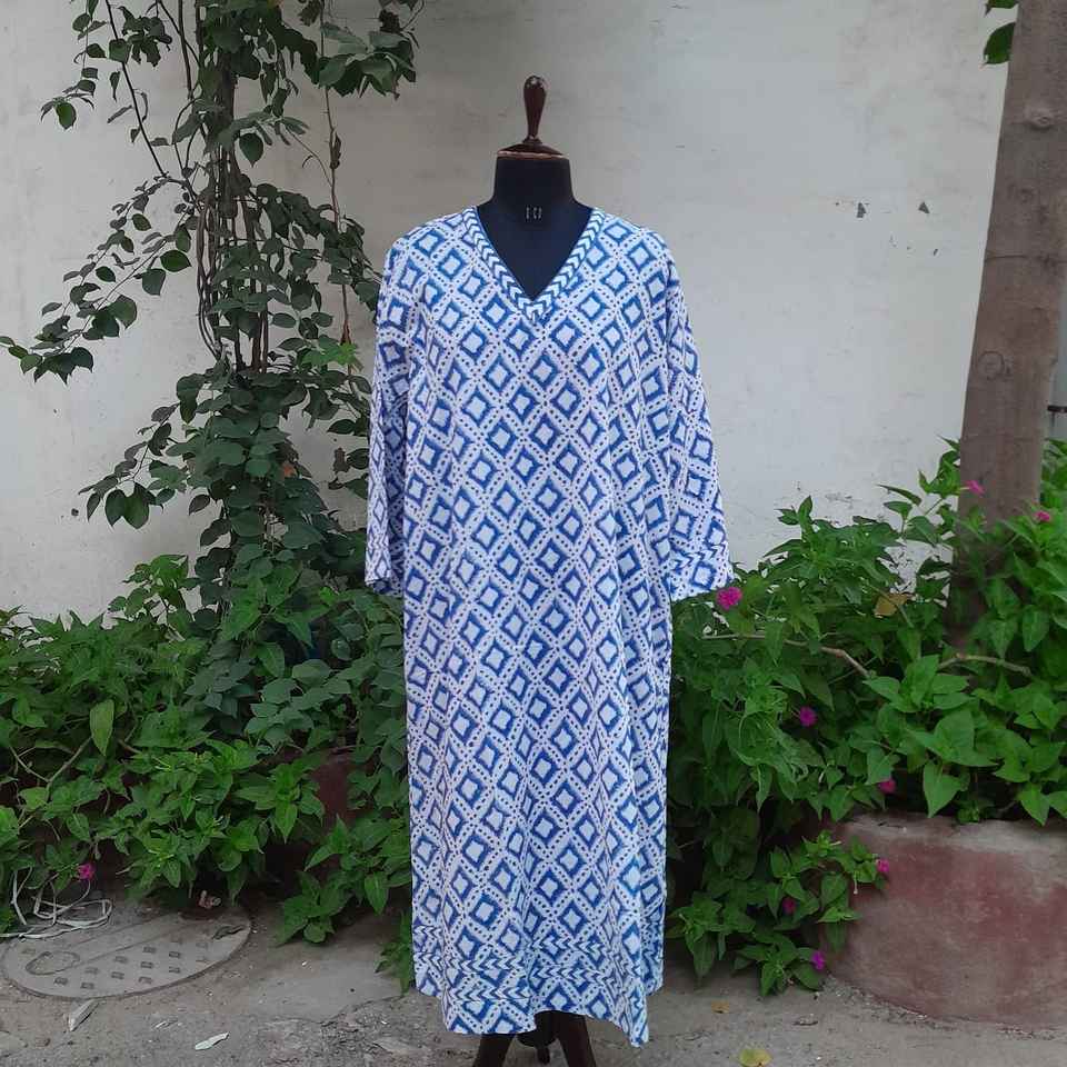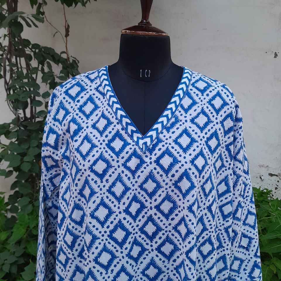 Hand Block Printed Cotton Fabric V Neckline Dress