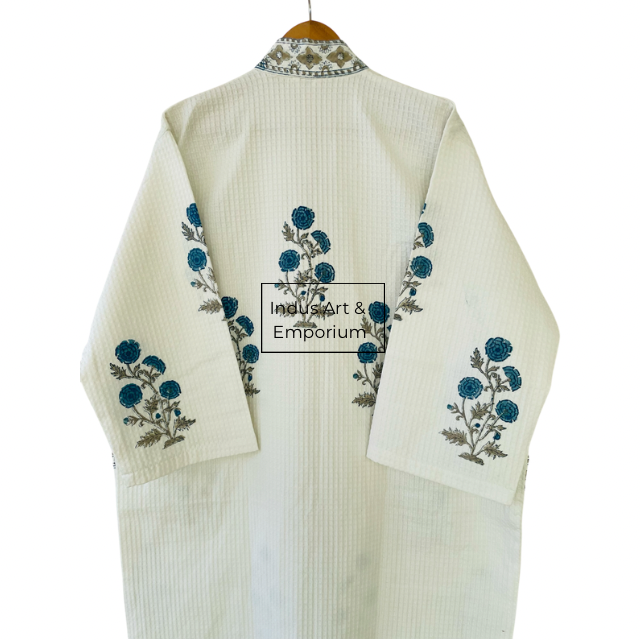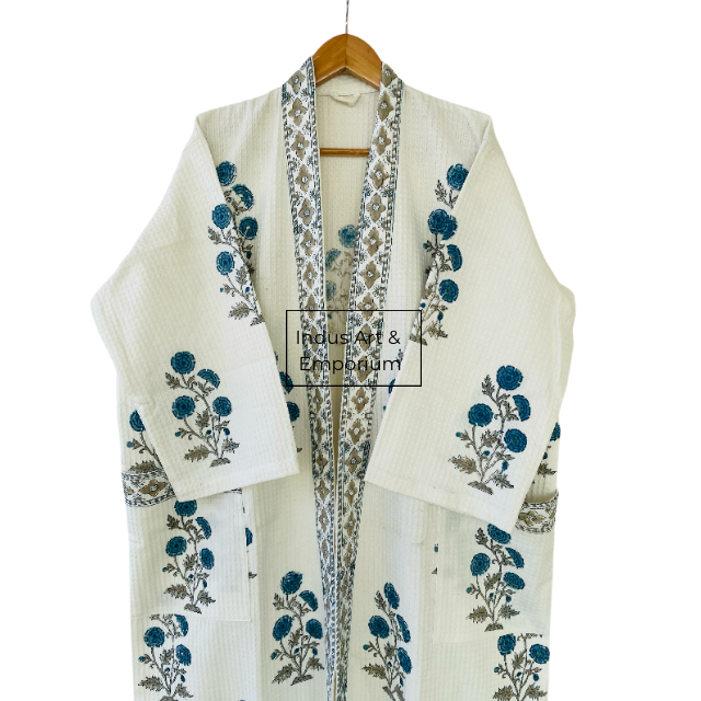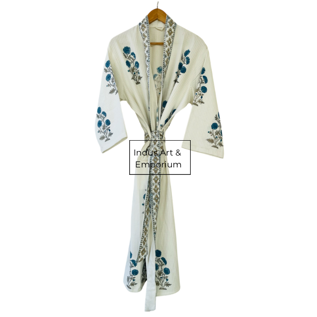 เสื้อคลุมอาบน้ำผ้าฝ้ายวาฟเฟิลพิมพ์ลายด้วยมือขายส่ง