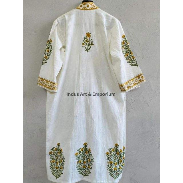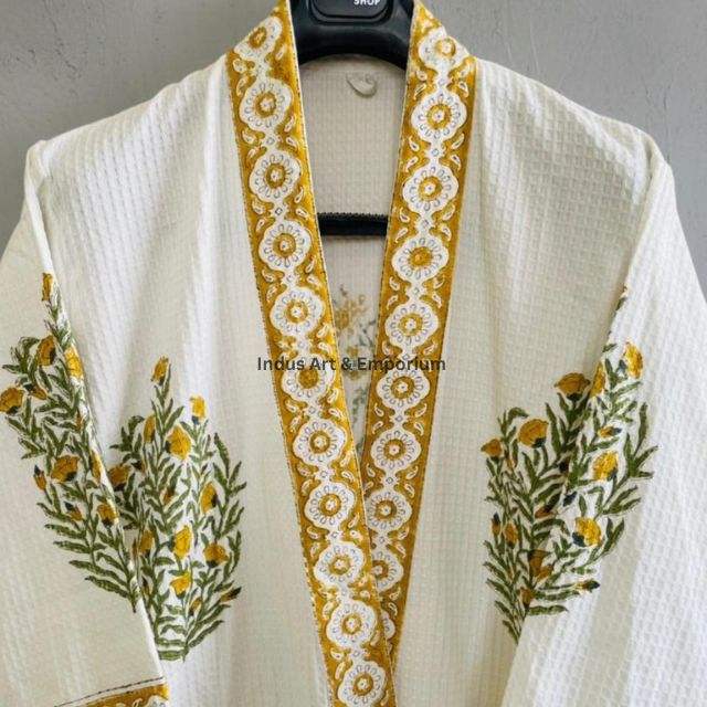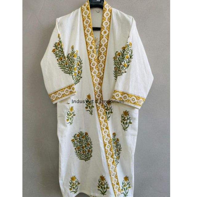เสื้อคลุมอาบน้ำผ้าฝ้ายวาฟเฟิลพิมพ์ลายด้วยมือขายส่ง