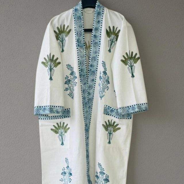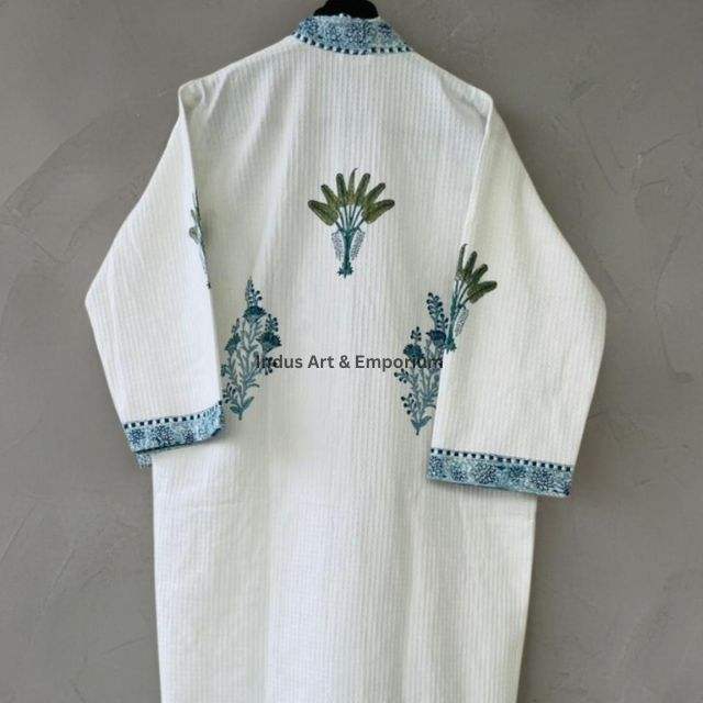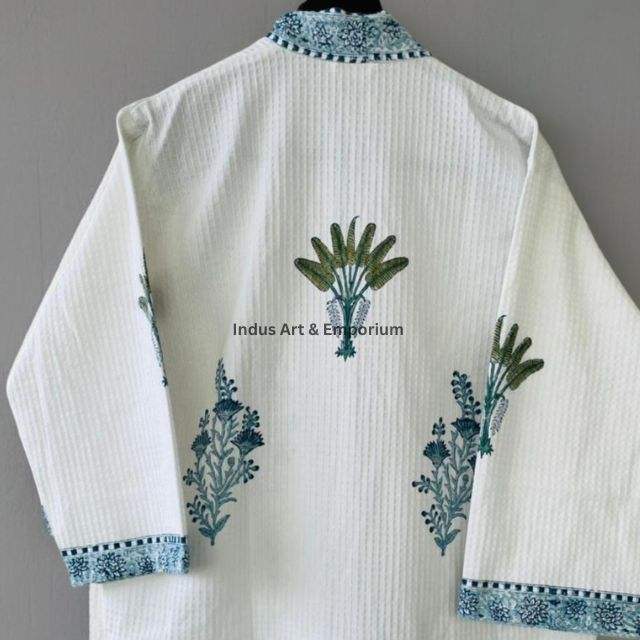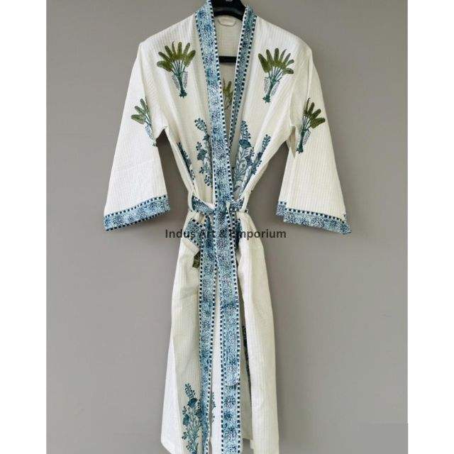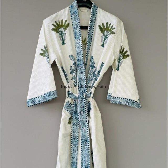 เสื้อคลุมอาบน้ำผ้าฝ้ายวาฟเฟิลพิมพ์ลายด้วยมือขายส่ง